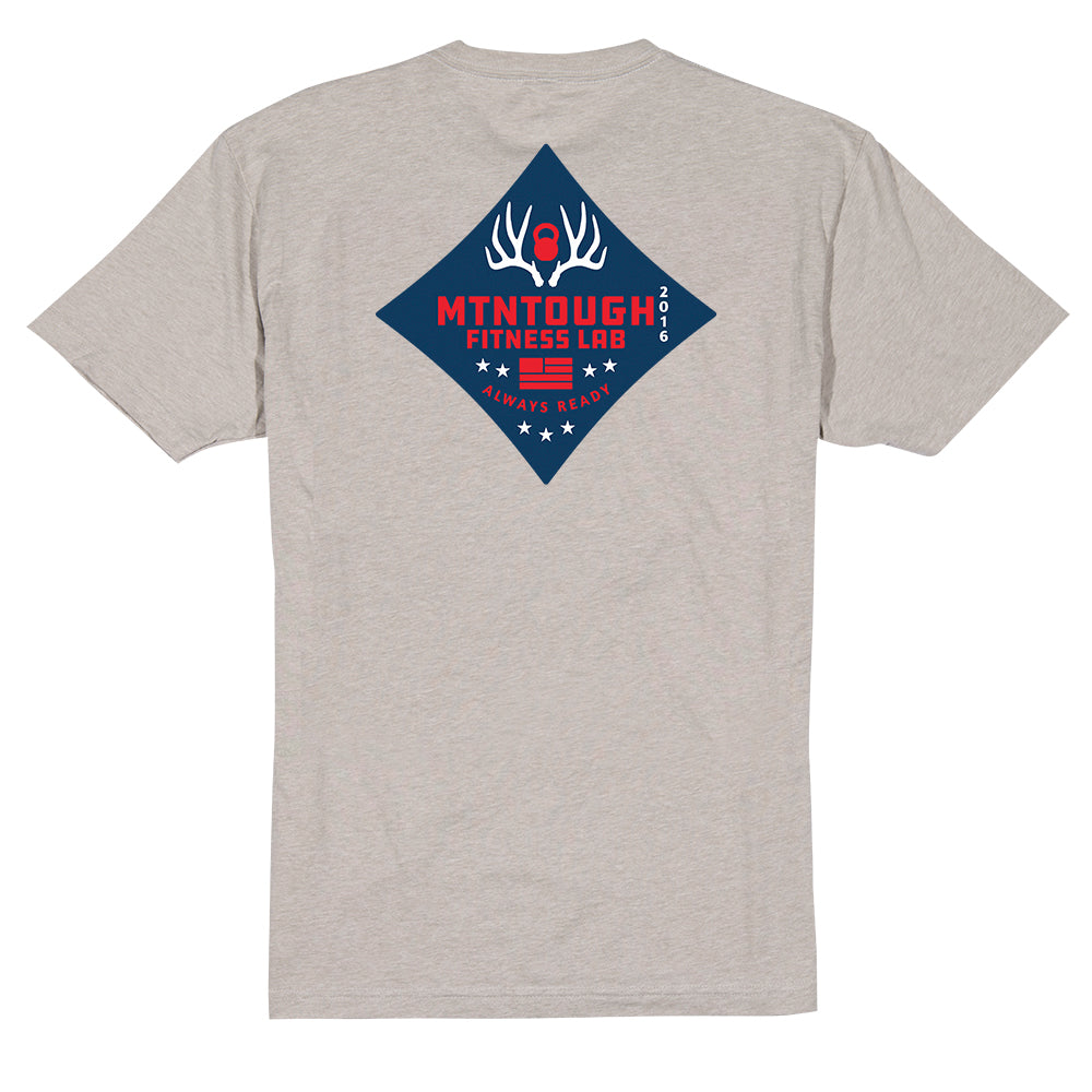 Built for those who carry the backcountry and the red, white, and blue in their veins. The Buck Diamond T features a bold diamond-shaped graphic framed by rugged mule deer antlers, representing strength, grit, and the traditions of the American hunter. Subtle USA flag elements woven into the design tie together mountain heritage with unmistakable patriotic pride.
